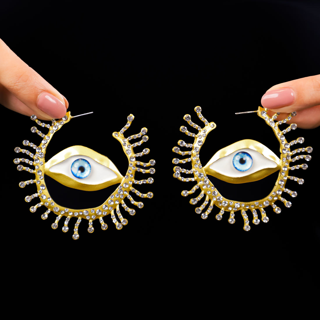 Hoops, chandelier earrings, danglers, and earcuffs are all excellent picks.