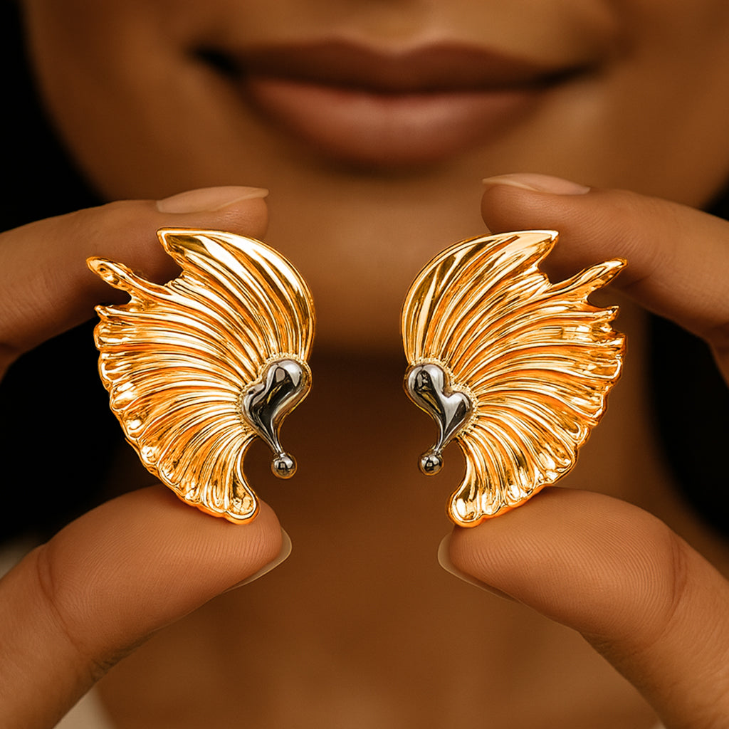 - Peach Teardrop Studs: A fresh take on the classic teardrop earrings, this stunning pair is studded with a mesmerizing hue that complements a gold accent of butterflies. Pair it with any outfit and it’ll surely make it your favorite.