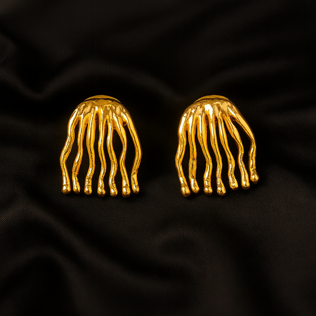 - Hammered Golden Strings Earrings: Shimmering with an energetic radiance, this elegant pair brings a unique design to the fore - perfect for any occasion or ensemble.