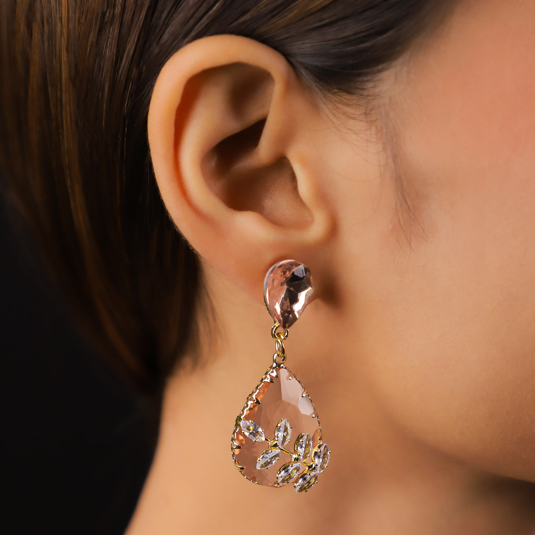 - Peach Teardrop Studs: A fresh take on the classic teardrop earrings, this stunning pair is studded with a mesmerizing hue that complements a gold accent of butterflies. Pair it with any outfit and it’ll surely make it your favorite.