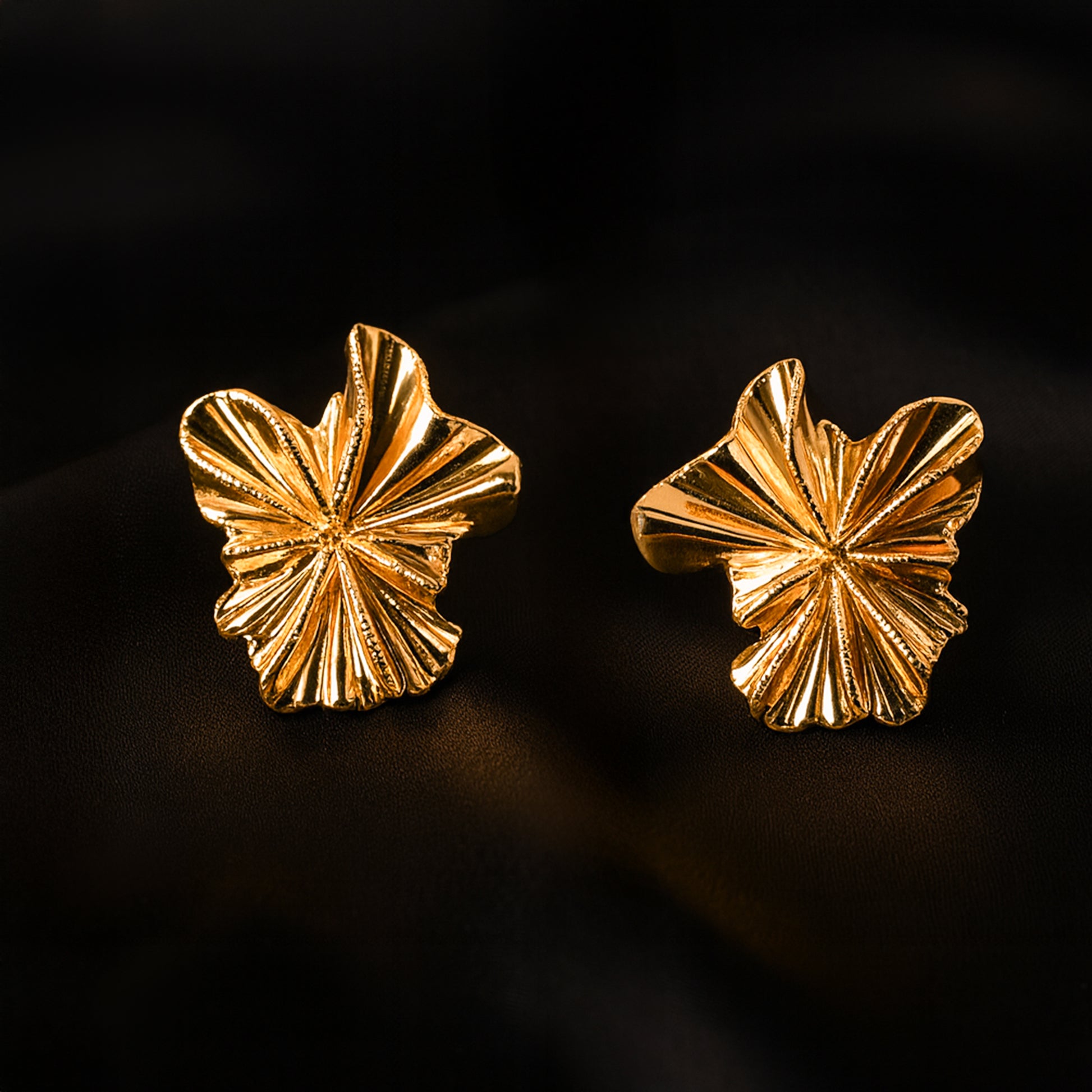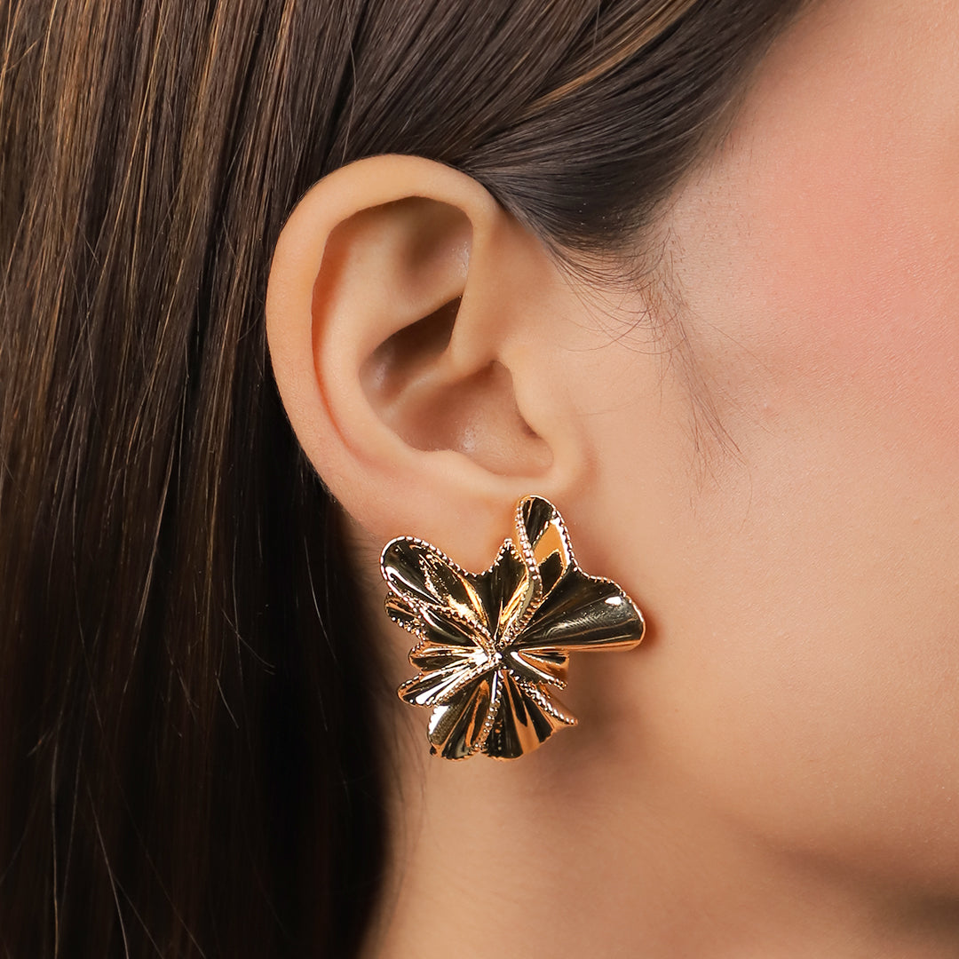 Edgy Flowers Gold Stud Earrings