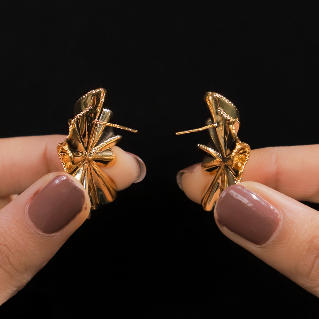 If you’re someone who likes their jewellery to be simple yet stand out, the Edgy Flowers Gold Stud Earrings are just perfect. Designed in a pretty flower shape with slightly folded petals, they have a lovely gold finish that catches the light every time you move. They’re light on the ears, comfortable to wear all day, and go well with almost anything - from your everyday outfits to dressy evening looks. A small touch of gold, but enough to make people notice.