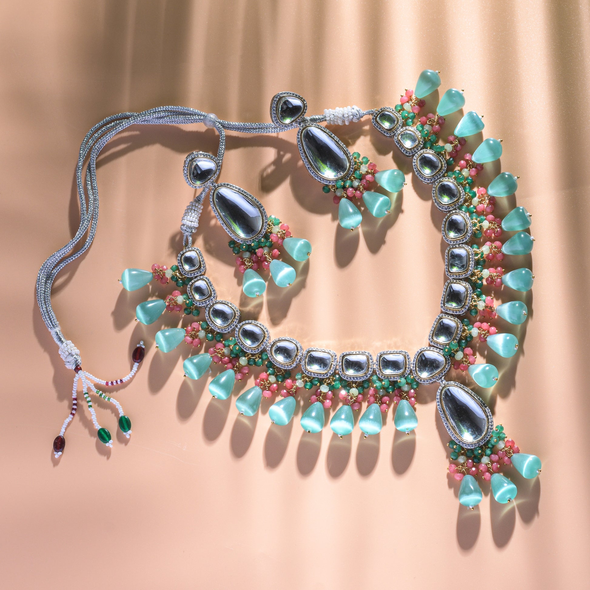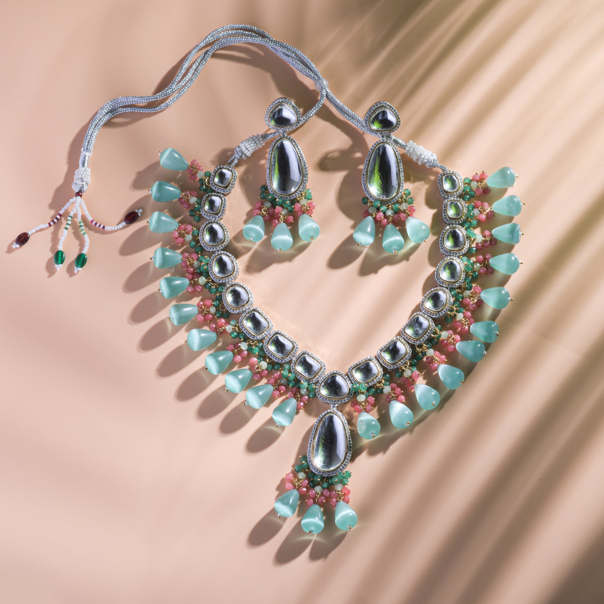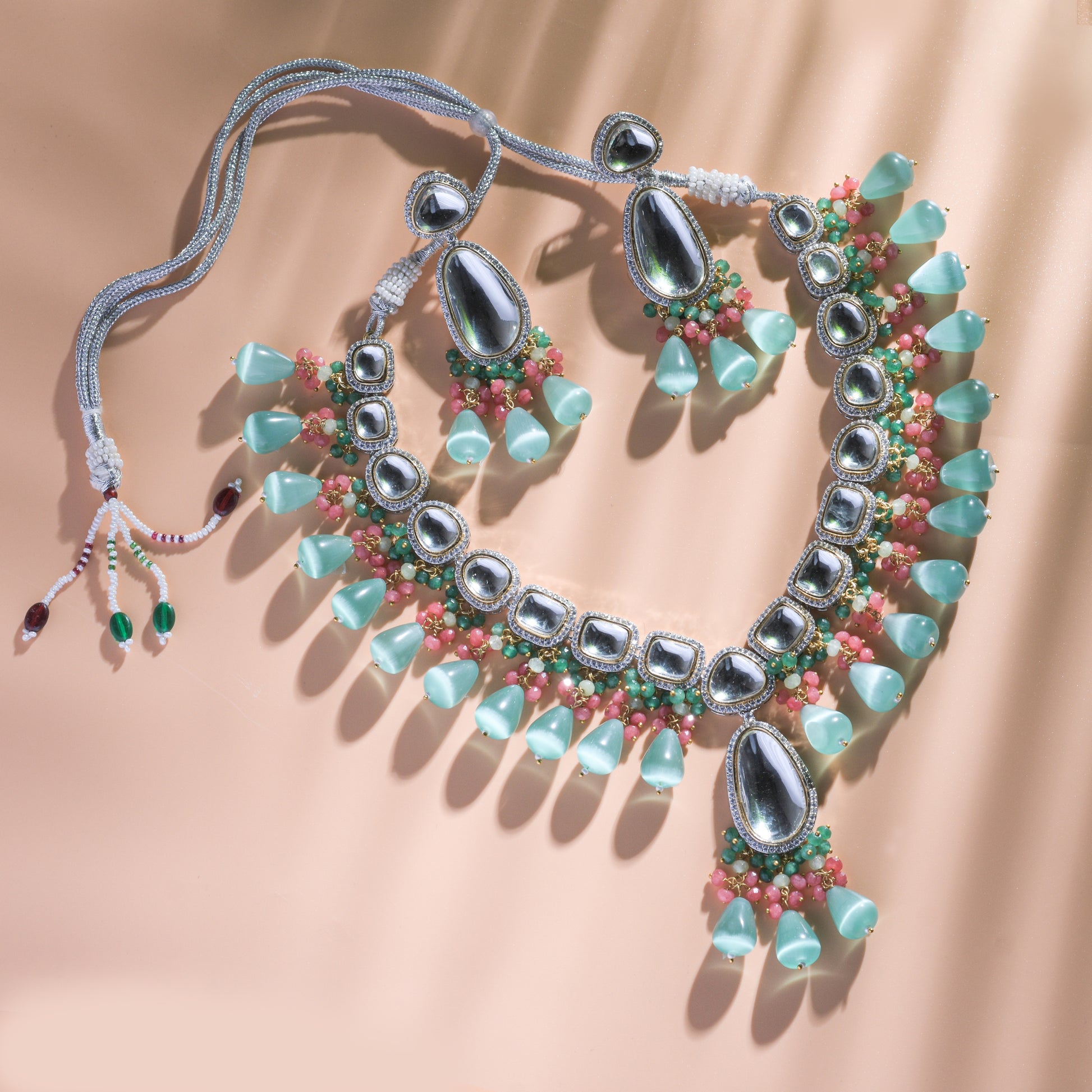 Elegant Kundan Necklace Set with Beads