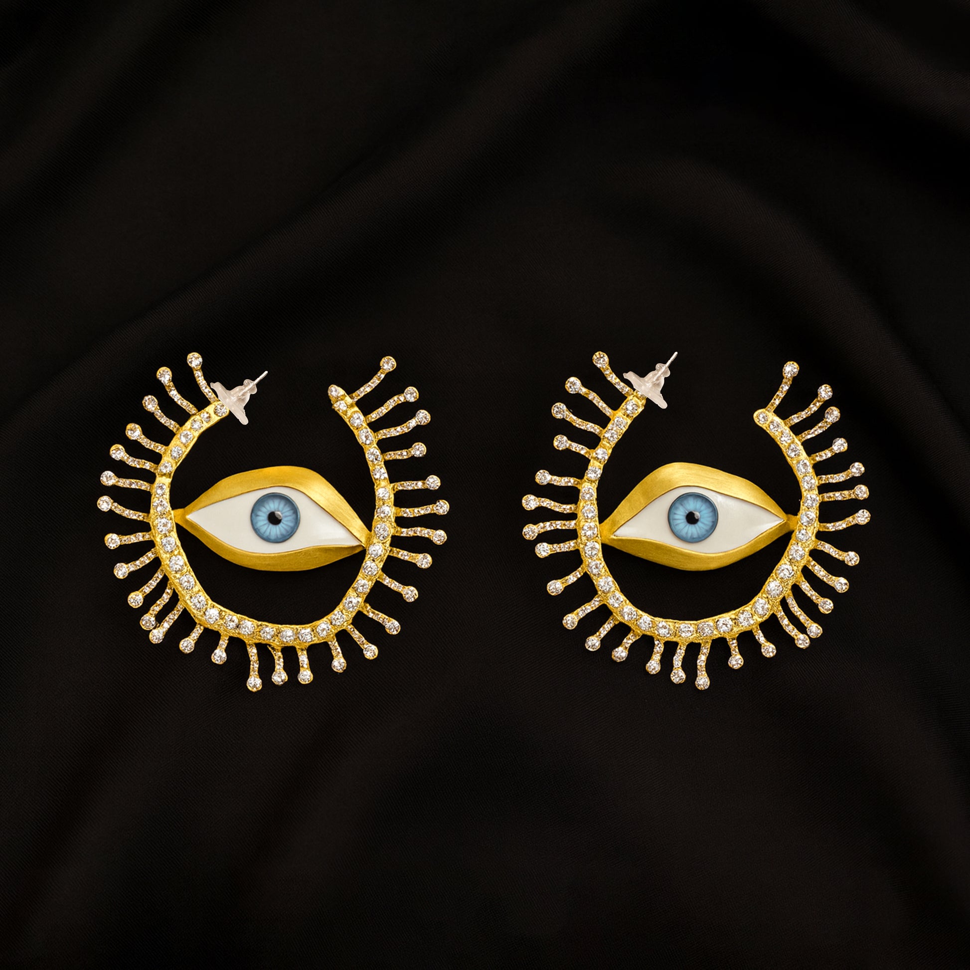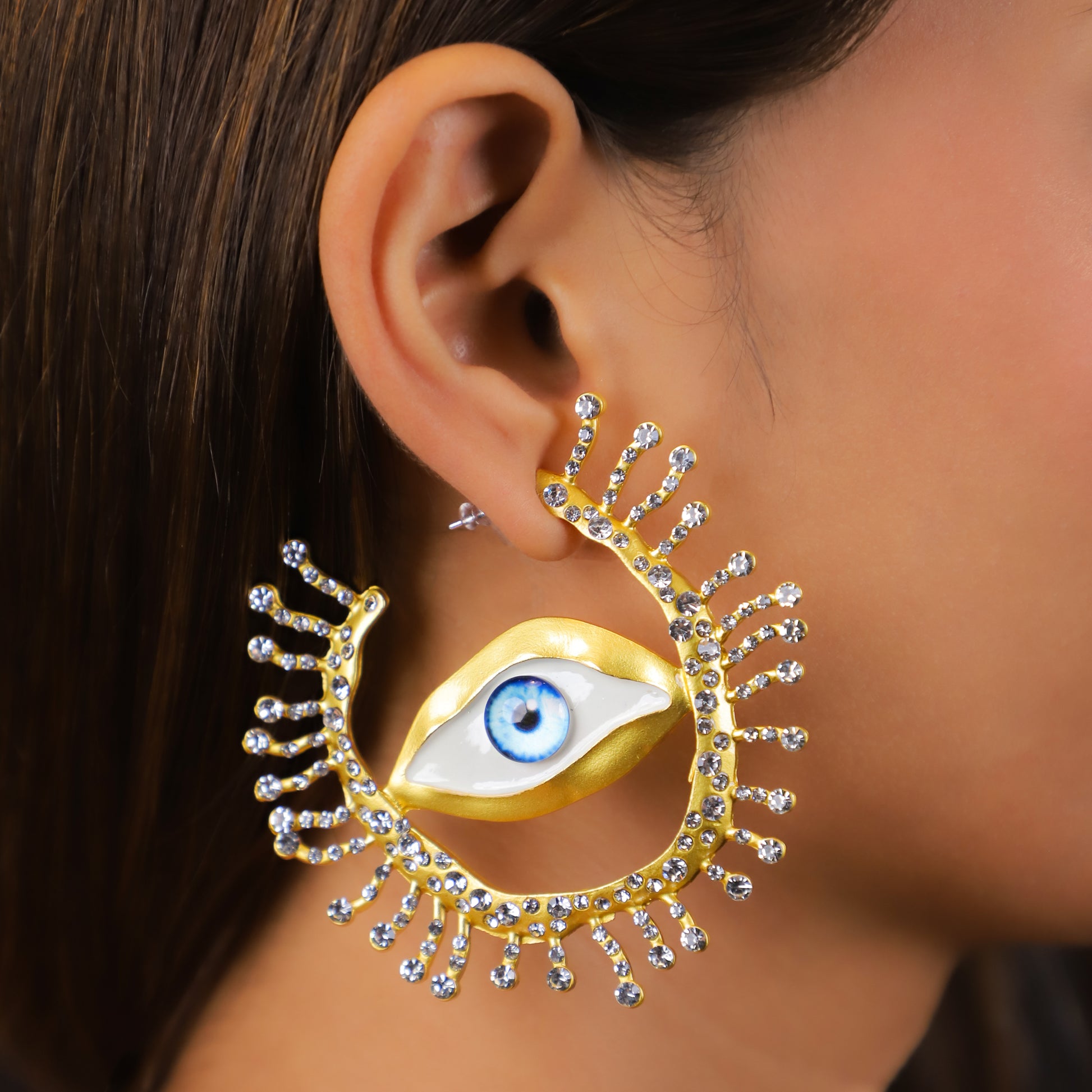 Add a touch of charm and protection to your look with these Evil Eye Golden Dangler Earrings. Designed with the iconic evil eye symbol at the center, these earrings aren’t just pretty - they’re believed to ward off bad vibes too. The soft gold finish gives them a stylish shine, while the delicate danglers add just the right amount of sparkle. They’re lightweight, comfortable to wear, and perfect for both everyday outfits and special occasions. Whether you're dressing up for a night out or just want to add something unique to your everyday style, these earrings are a great pick. They also make a thoughtful gift for someone who loves meaningful jewelry.