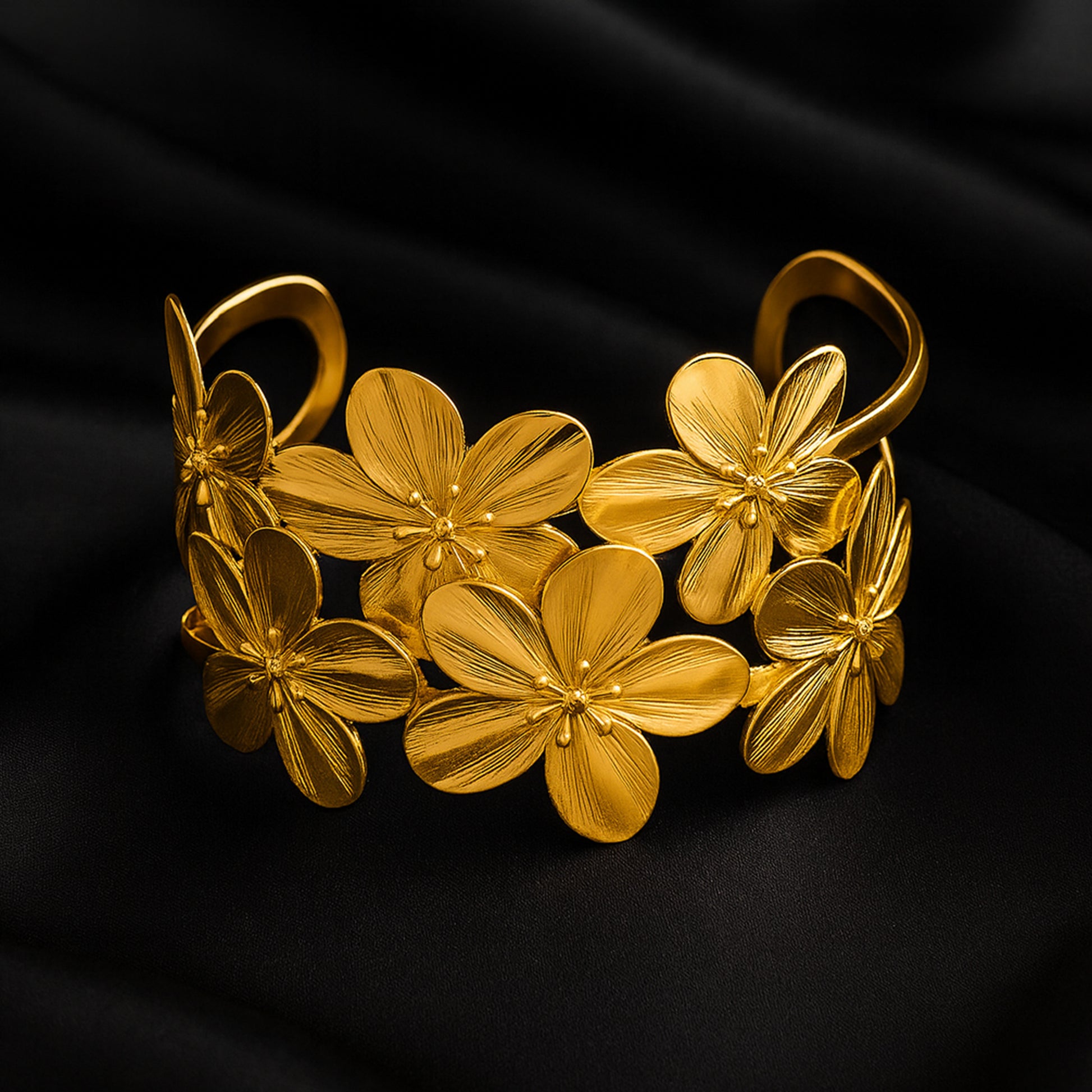 Floral Golden Statement Cuff Bracelet