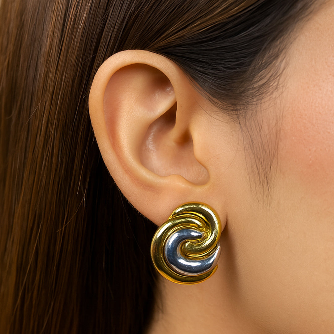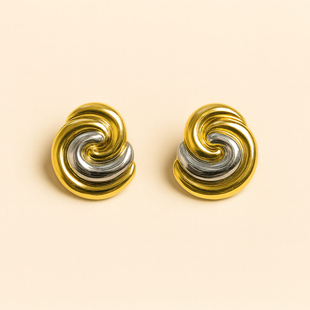 The Gleaming Swirls Gold & Silver Studs brings you that perfect mix of elegance with a modern charm. Featuring a unique swirl design that blends warm gold tones with cool silver accents, these studs catch the light beautifully from every angle. They’re lightweight, comfortable for all-day wear, and versatile enough to pair with both casual and formal outfits. A simple yet striking accessory that adds a polished touch to any look.