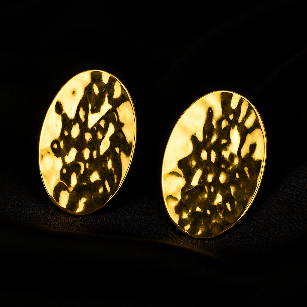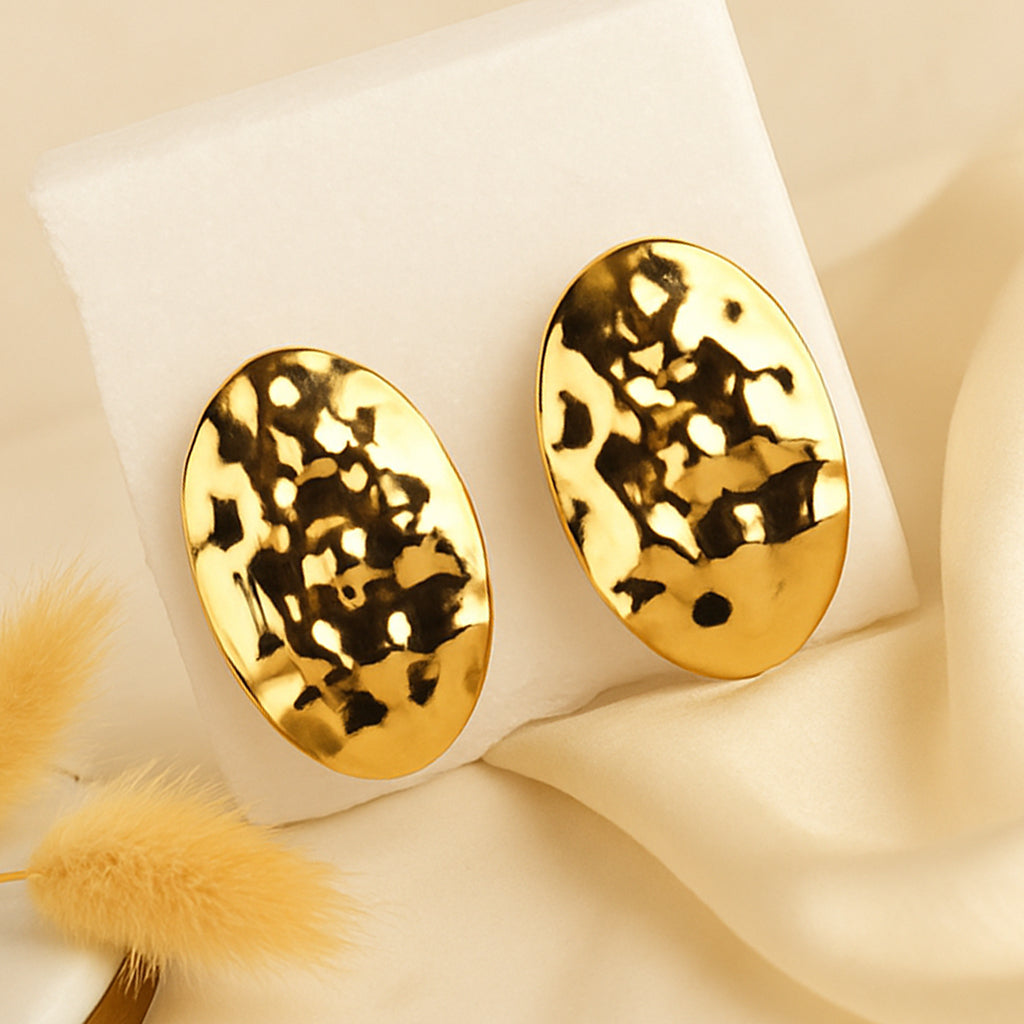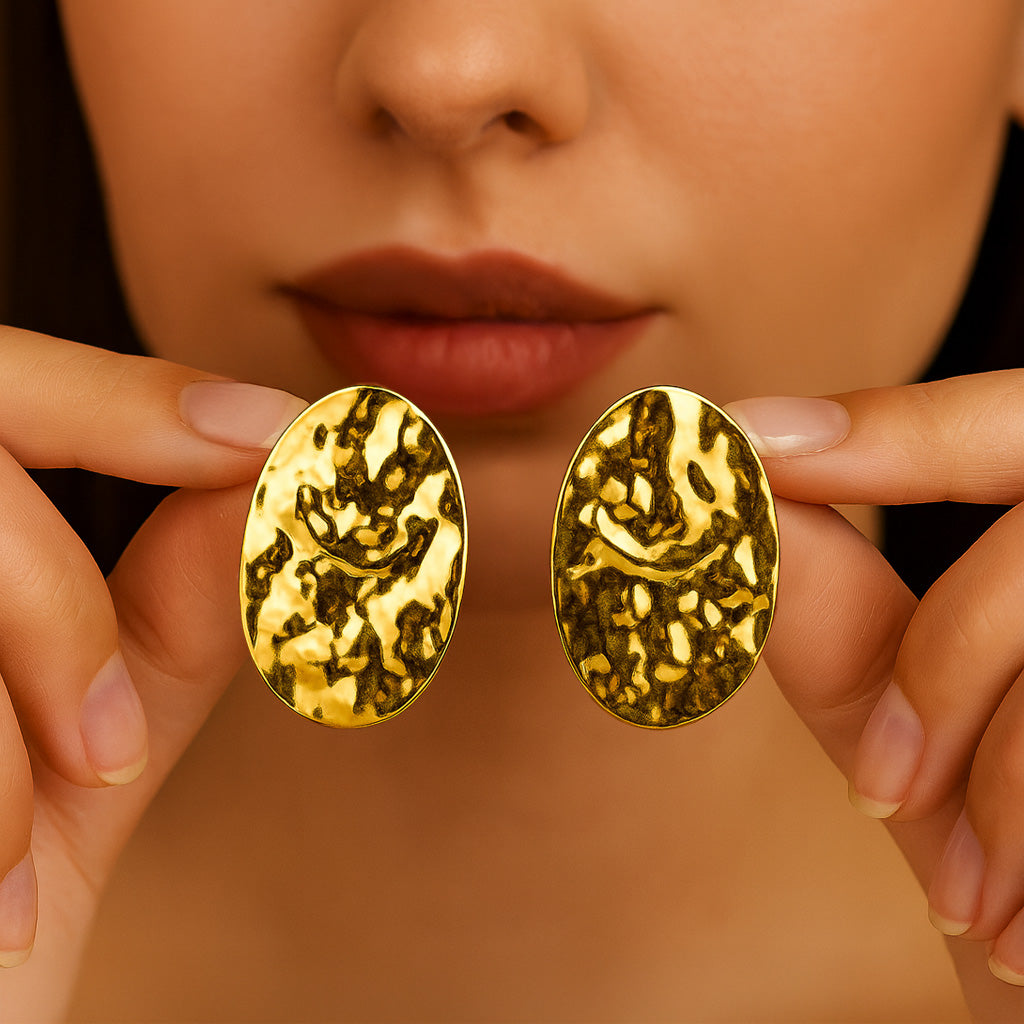 Bold, sleek, and effortlessly stylish - the Golden Crinkled Statement Earrings are a must-have for anyone who loves minimal design with a modern twist. The hammered, textured finish adds a unique shine that catches the light beautifully, giving you that little extra glow. And the oval-shaped design is perfect when you want something simple yet striking. Whether you're dressing up for a night out or adding flair to a casual outfit, these earrings make a strong style statement without saying a word.
