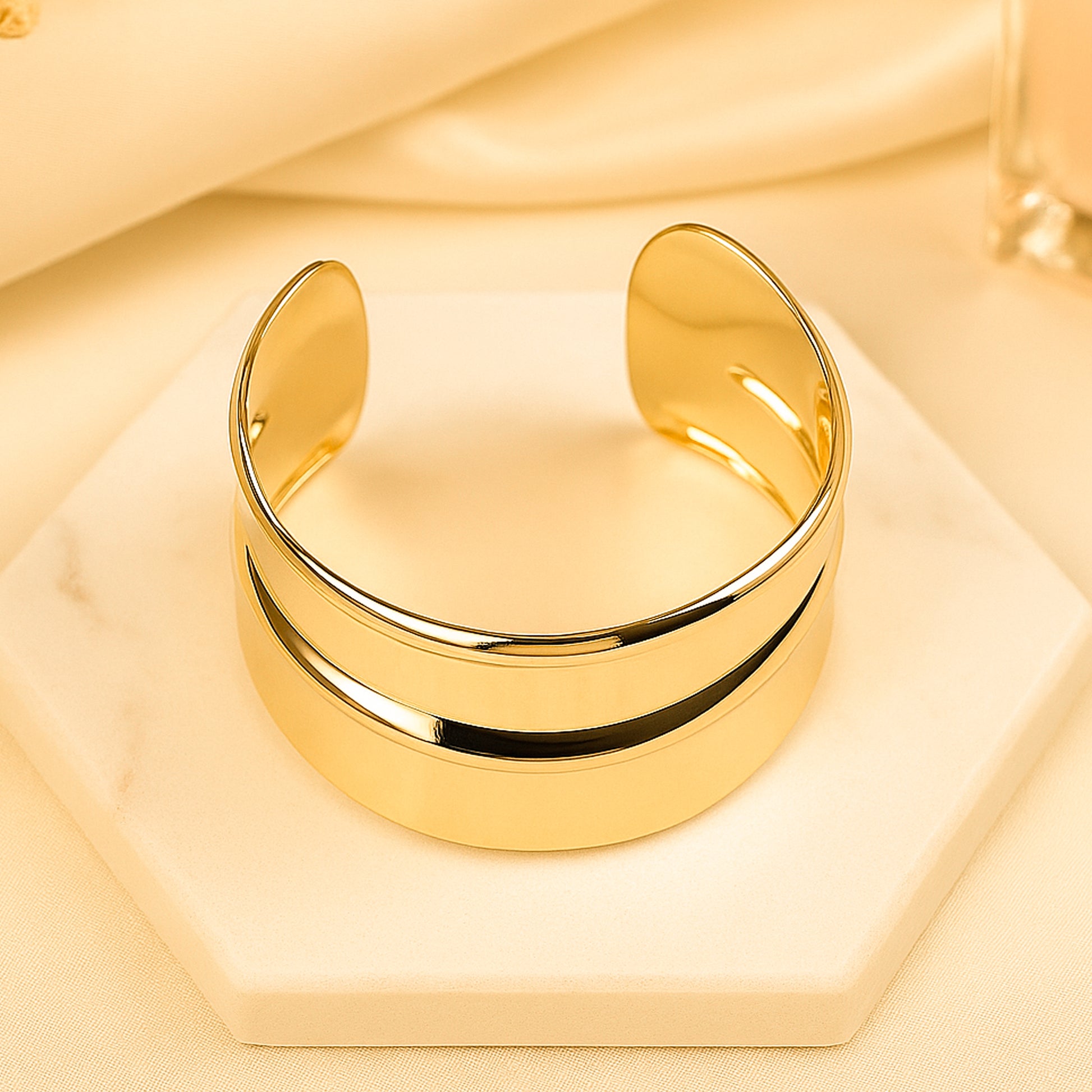 The Golden Gloss Cuff is simple, shiny, and effortlessly stylish. It has that clean, polished finish that makes it feel modern but still super easy to wear with anything. Whether you're heading to work or out for dinner, this cuff adds just the right touch of bold without trying too hard.