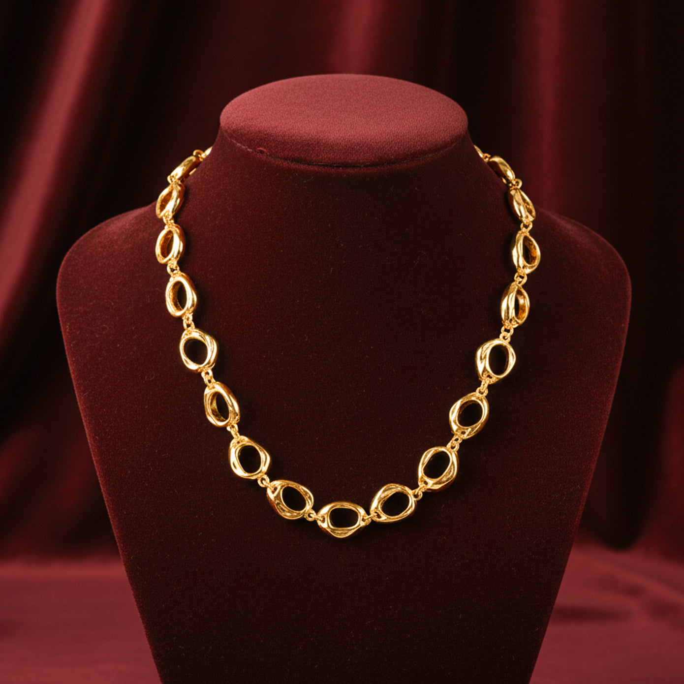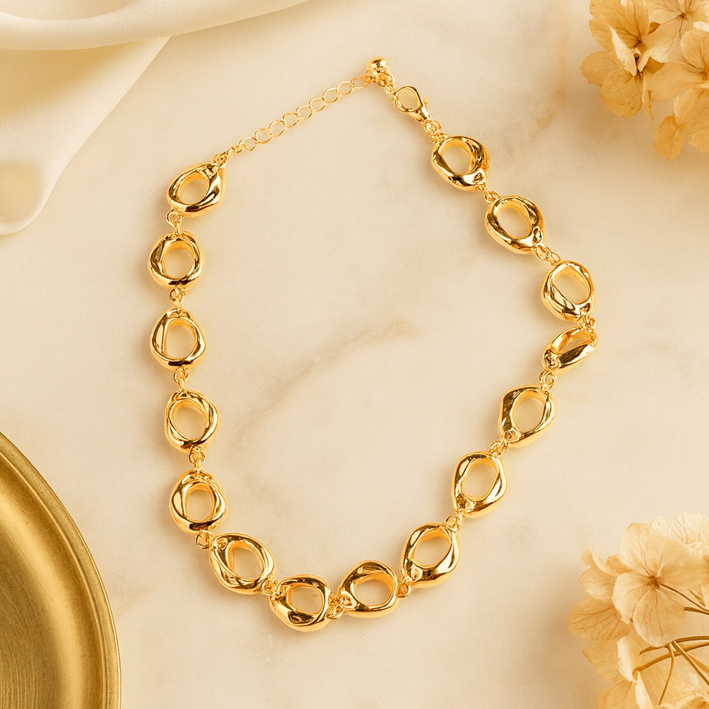 Big, bold, and unapologetically golden - Golden Link is the chunky necklace made for people who like to deliver an instant impact. With oversized & abstract links and a high-shine finish, it’s the kind of piece that doesn’t wait for permission. The chains are expertly crafted with the premium, lightweight & irritation-free materials. Throw it on with denim, tailoring, or bare shoulders - it’s made to command attention.