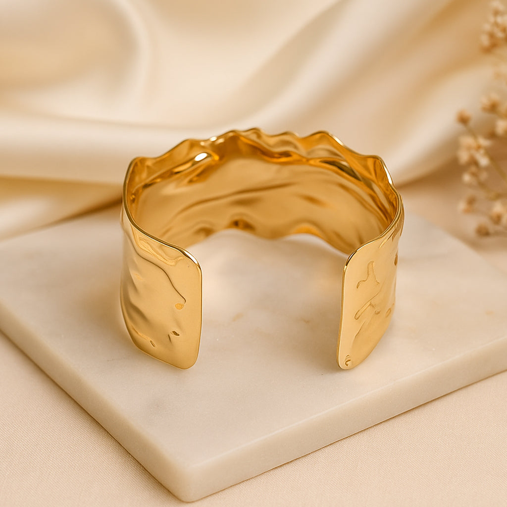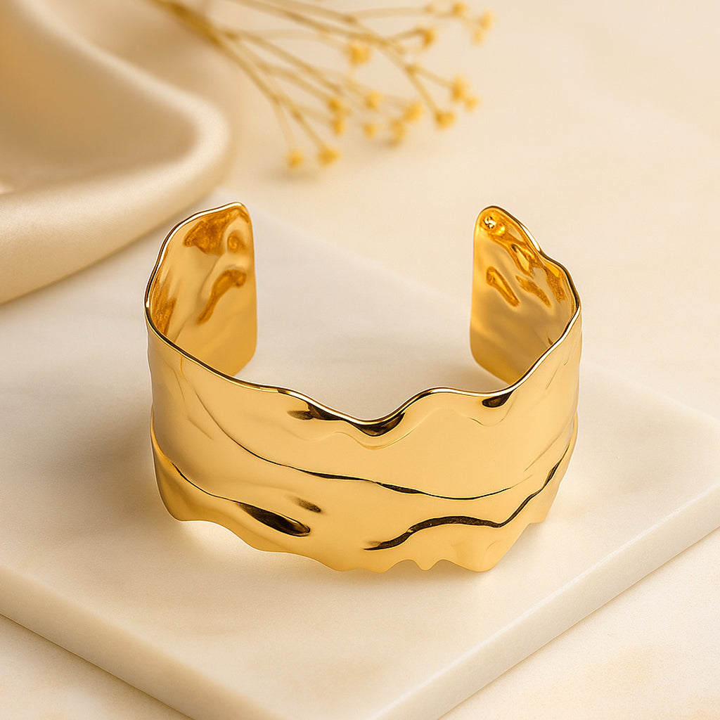 The Golden Waves Cuff is one of those bracelets that instantly stand out without being over the top. It has a wavy, free-flowing texture, sculpted look that feels modern but organic, like it was made just for your wrist. You can wear it with pretty much anything: a breezy dress, a crisp shirt, even your everyday jeans-and-tee combo. It adds that little spark that pulls your whole look together.