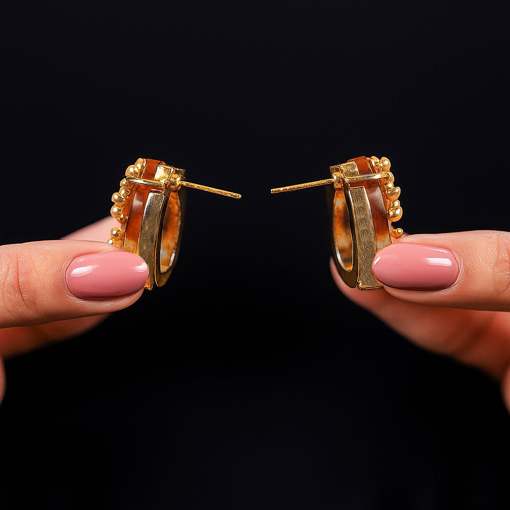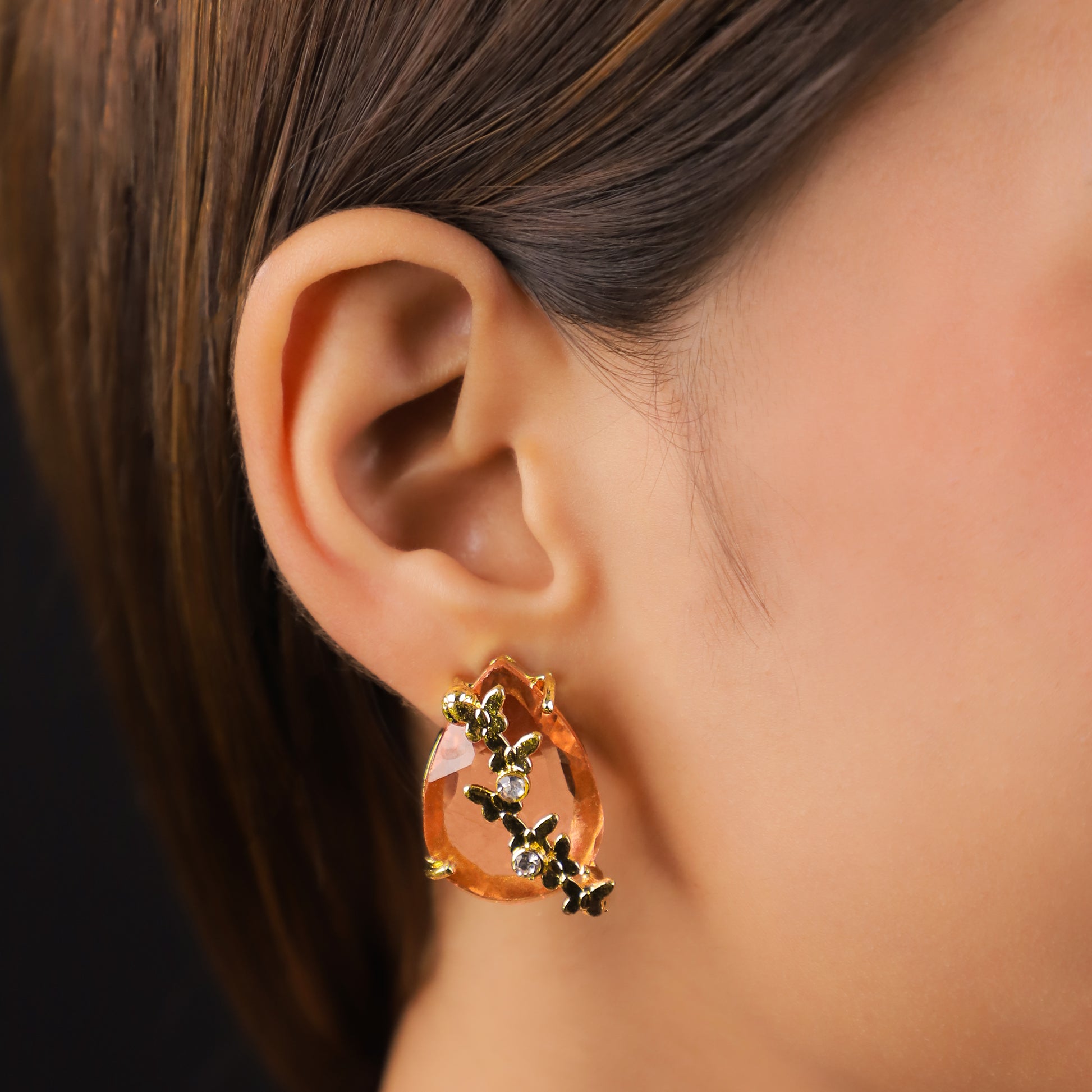With their warm peach-toned stones and delicate floral detailing, these Peach Teardrop Studs bring a subtle sparkle that feels both feminine and refined. Their soft, elegant design can be a lovely little addition to your jewelry collection.