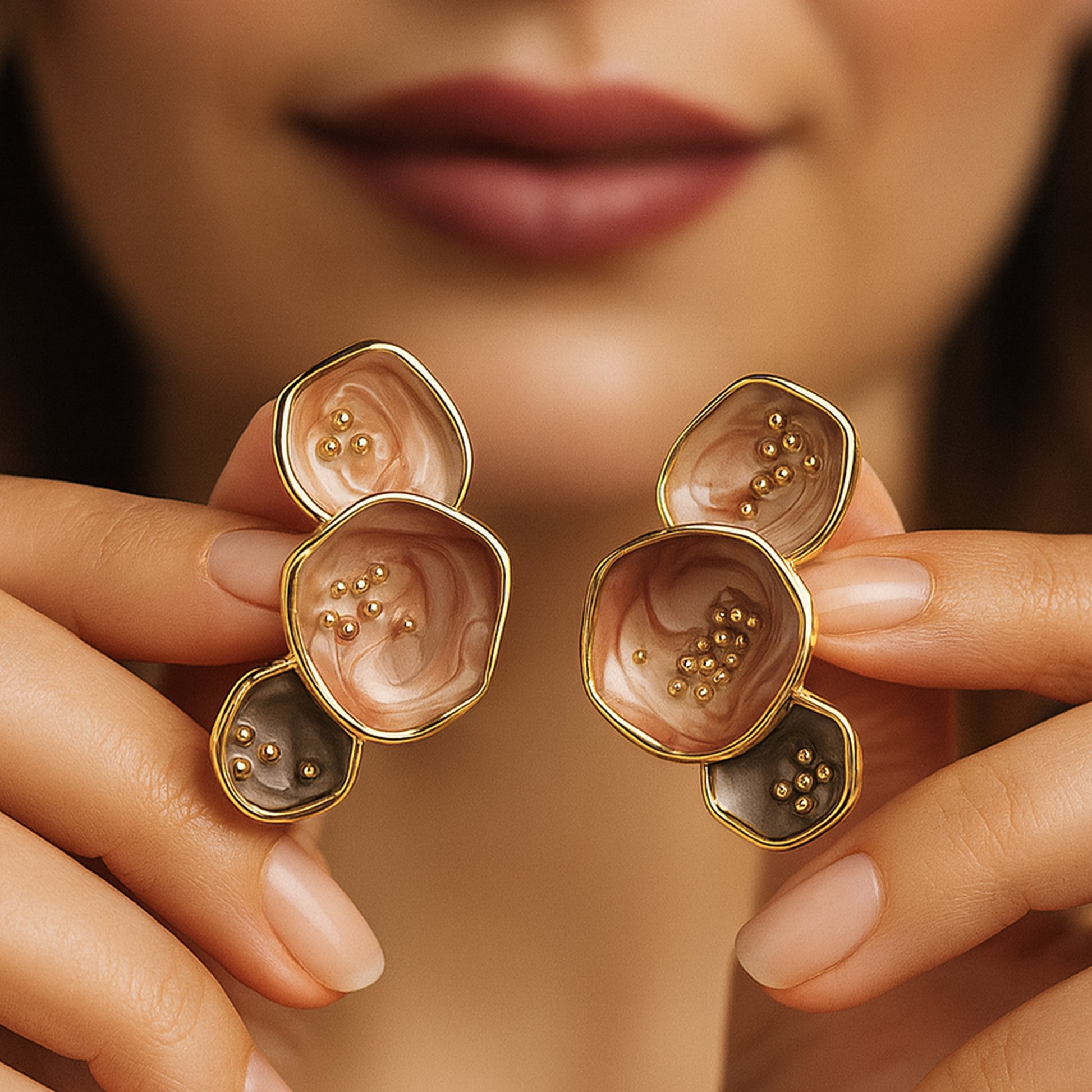 Subtle yet stunning - these Pretty Pastels Drop Earrings are all about fine elegance. Designed with gentle shades of mauve, blush, and slate blue, framed in a glossy gold finish, they bring a modern artistic touch to your look. Lightweight and super versatile, they work just as beautifully with a kurta as they do with a white shirt and jeans. It’s that perfect “not too loud, but still makes a statement” kind of vibe.