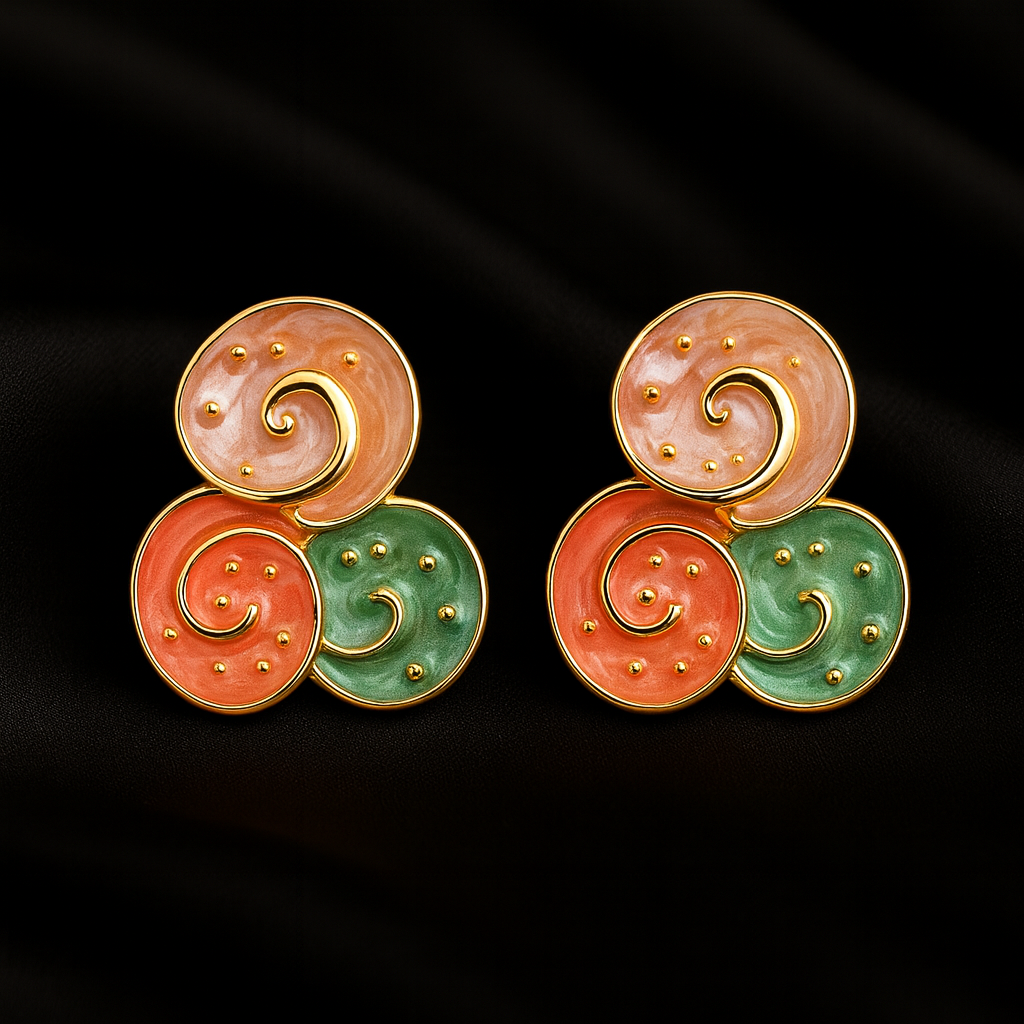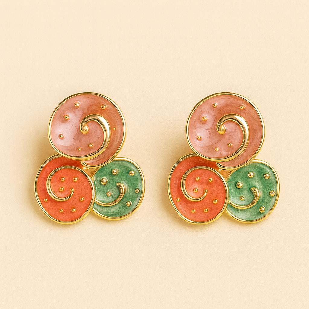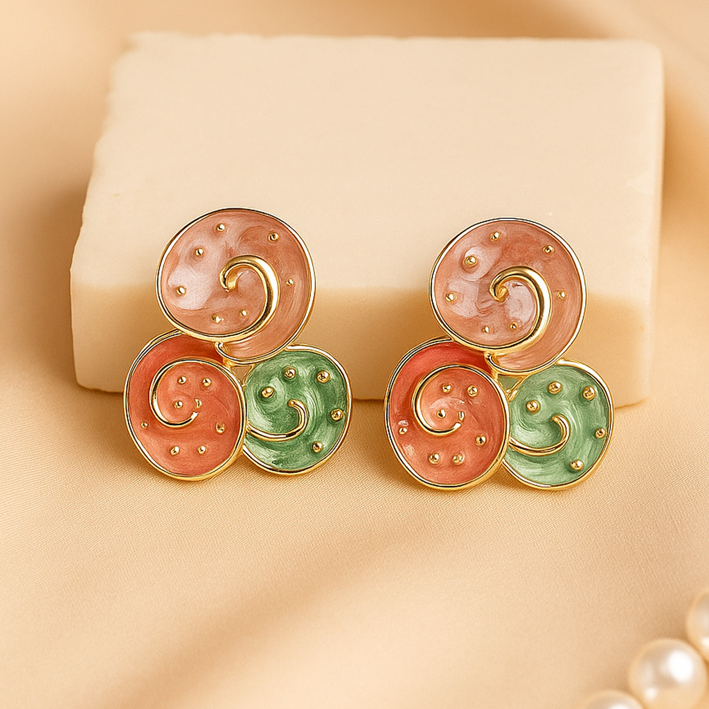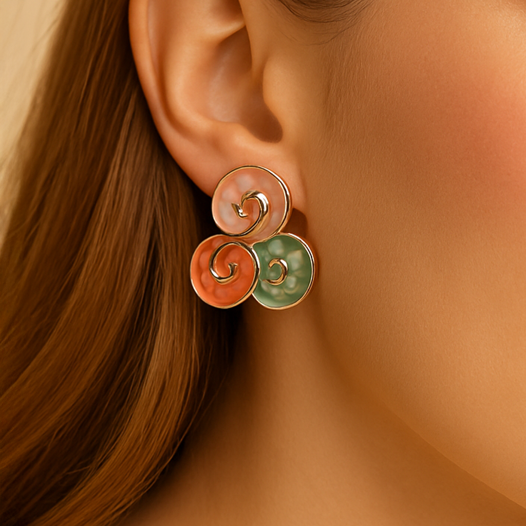Fun, artsy, and full of personality - the Swirl Multicolor Studs are made to stand out. With soft shades of pink, coral, and green, these earrings bring a playful splash of color to any look. The swirly design adds a creative touch, while the gold outline gives them a polished finish. Light, comfy, and totally unique, they’re perfect for brightening up a plain outfit or adding something different to your everyday style.